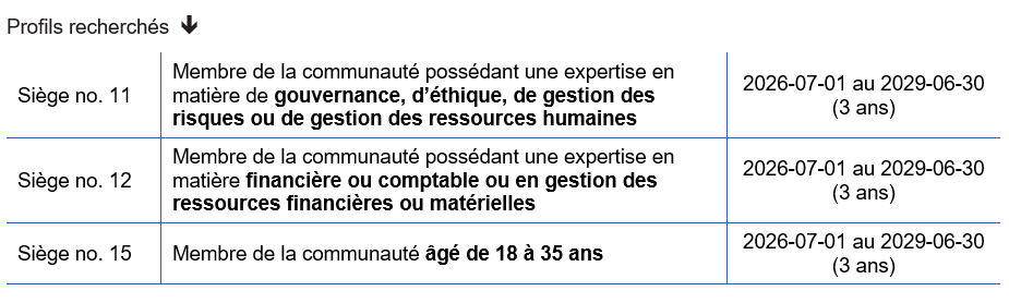 Un processus de désignation est entamé pour combler trois postes de membre représentant de la communauté au sein du conseil d’administration du CSSLT.